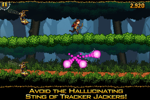 Girl on Fire takes place before the events of the first film/book. Katniss Everdeen is hunting for food in the wilderness outside District 12 when suddenly a swarm of Tracker Jacker wasps appear. She'll have to shoot these mutated insects down with her bow and arrow. Once she gets back to District 12, she'll have to contend with Capitol hovercrafts.
