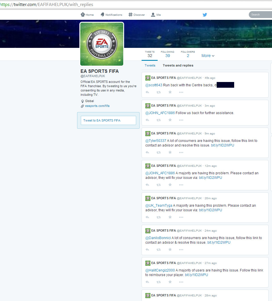 This news was supposed to go up yesterday, because I imagine some people might really want to know about it, but it kind of got lost in the shuffle. Nevertheless, it's here and it's fresh and it's a giant warning to be very careful about the official EA Sports support channel on Twitter.
